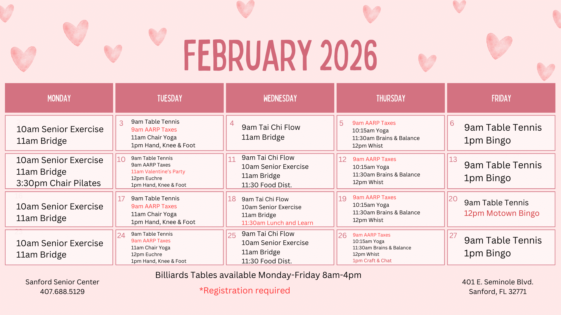 - Table Tennis: Â Â Tues & Fri 9 AM